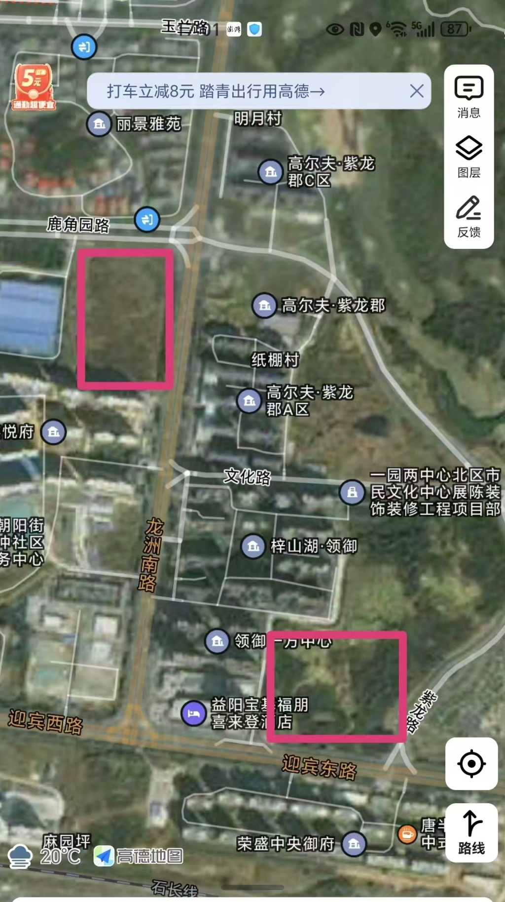 益阳市高新区龙洲路位于益阳城区,周边高楼林立、车水马龙,有喜来登酒店等高端商业。龙洲路与鹿角园路交界处西南角,龙洲南路东侧、迎宾路北侧,各有一块长满杂草的土地。这两块土地的使用权人为益阳惠和建设发展有限公司(以下简称惠和公司)。但因债务纠纷,这两块土地被东莞中院查封。